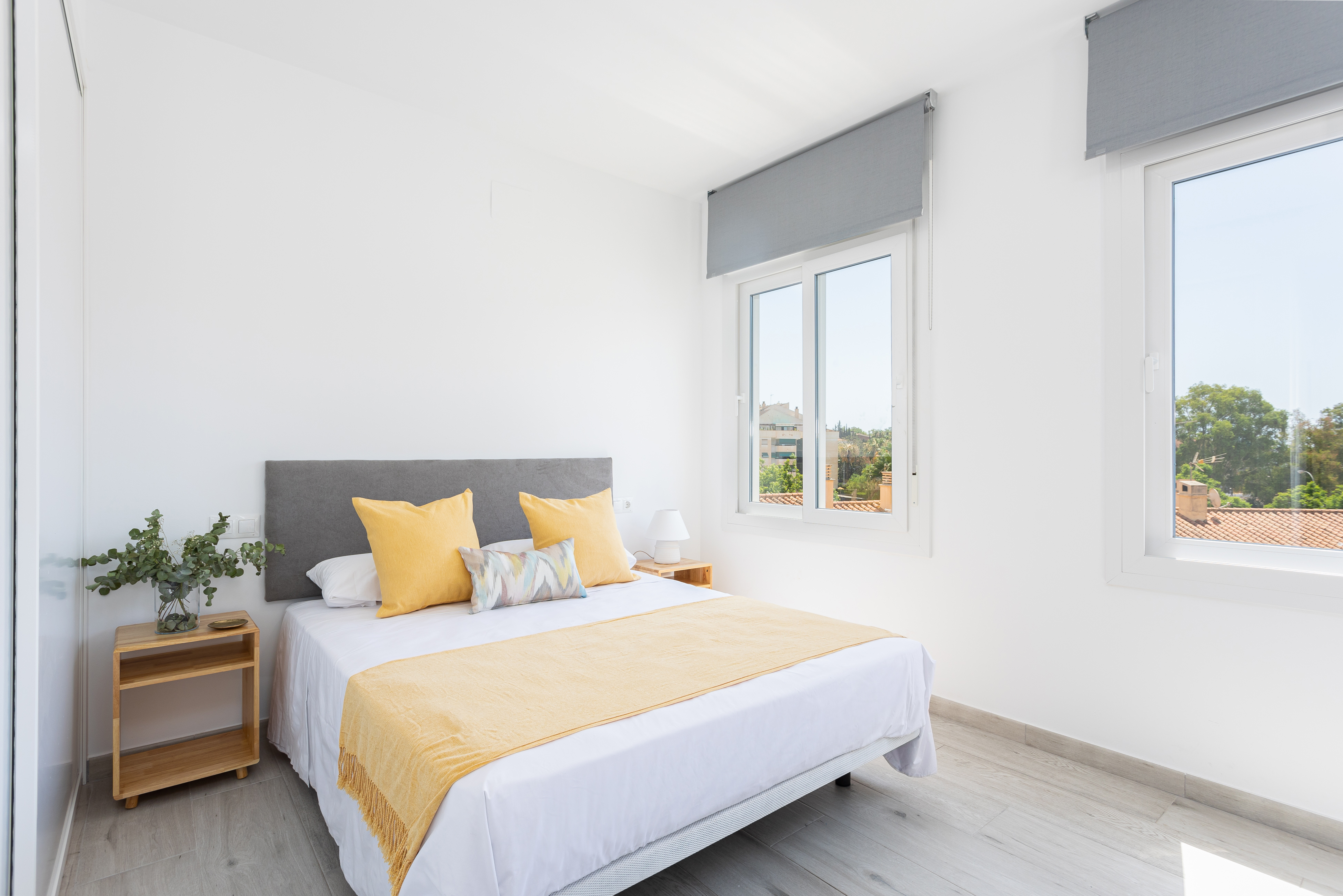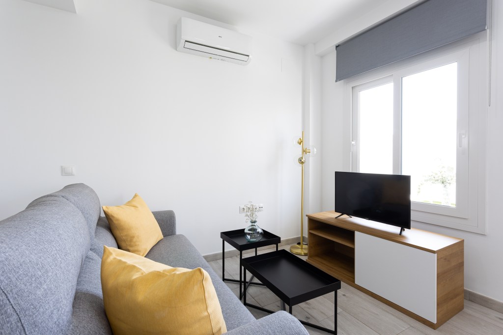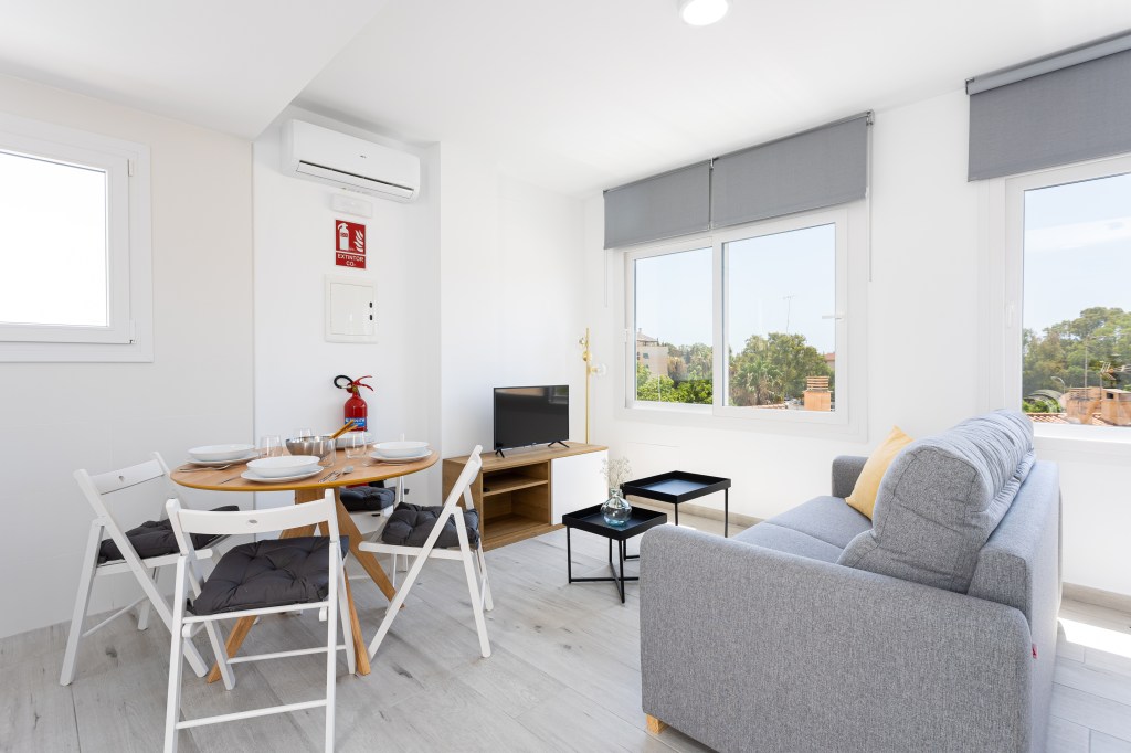 The new complex La Pelusa Apartments consists of 7 studios and 2 apartments located in a sunny and quiet area in the eastern part of the city of Málaga and just a five-minute walk from the beach. Enclosed car park. Two-key rating by AT- standards. It has two small blocks. The first there are two duplexes 48 square meters with capacity for 4 people, each one has a double bed and a sofabed, Apartament 11 12. The studio 13 has 35 square meters, it has a large bathroom, it has a patio. And Studio 32 has a patio eye not very useful. In the other block there are five studios, 21 22 23 they have direct access to the garden, 31 has view sea and 32 has a east facing terrace. All studio have capacity for two people and have a double bed and sofa bed.